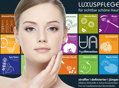 Age Attraction-Wirkstoff-Kosmetik ist die gelungene Symbiose aus Wissenschaft und Natur. Wertvolles Hyaluron, hochdosiertes Vitamin C, Apfelstammzellen, synergetisch wirkende Vitaminkomplexe, leistungsstarke multiaktive Anti-Aging-Peptide, innovative pflanzliche Anti-Falten-Wirkstoffe, wie das Parakresse-Extrakt mit Anti-Falten- Express-Wirkung oder das Koenzym Q-10 sind typischerweise deutlich höher konzentriert als in vielen anderen - selbst hochpreisigen - Pflegelinien.